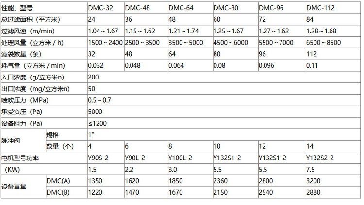 性能、型號(hào) DMC-32 DMC-48 DMC-64 DMC-80 DMC-96 DMC-112